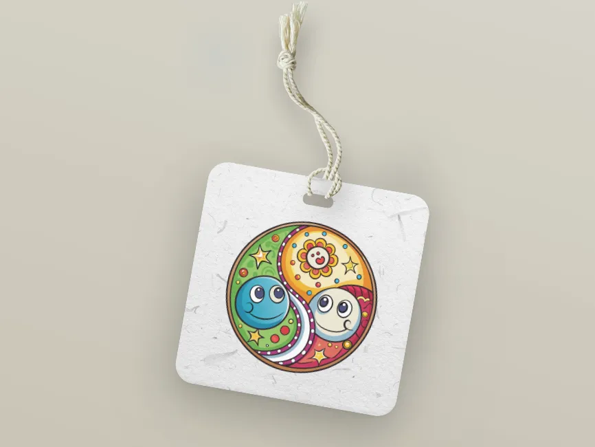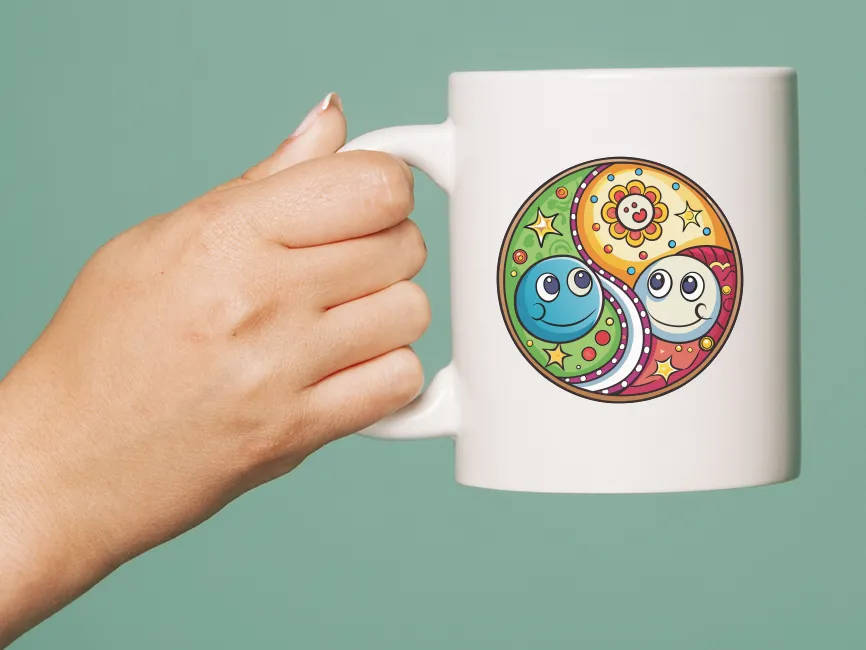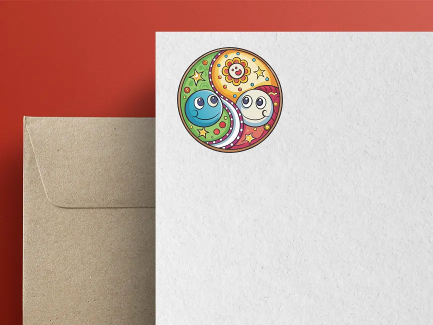 The comic-style smiling faces add personality and friendliness, appealing to brand identities looking for playfulness and inclusivity. This makes the design particularly useful for children-focused businesses, educational content, wellness brands, or creative studios looking to emphasize harmony, positivity, and duality in a cheerful way.