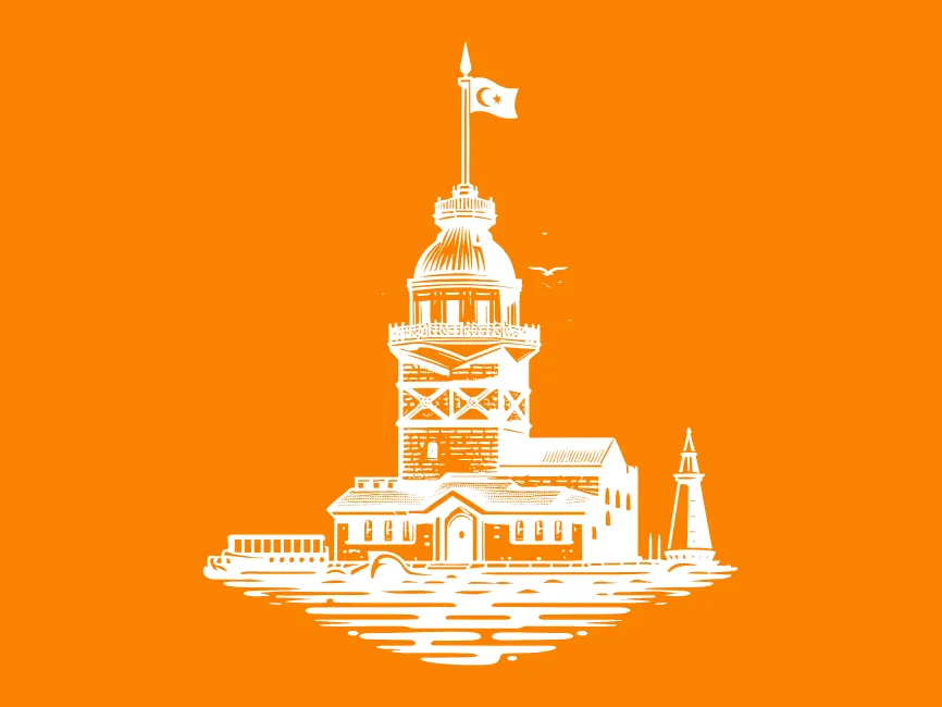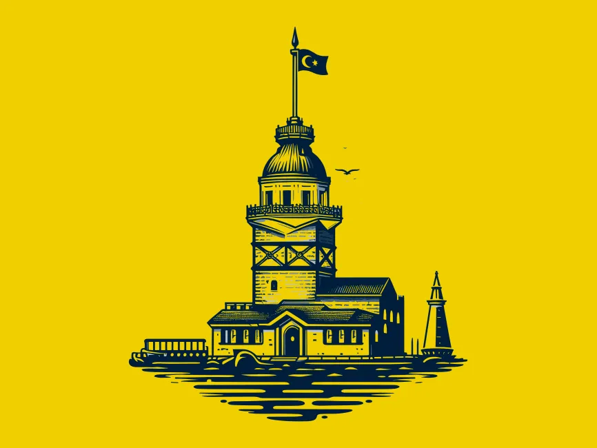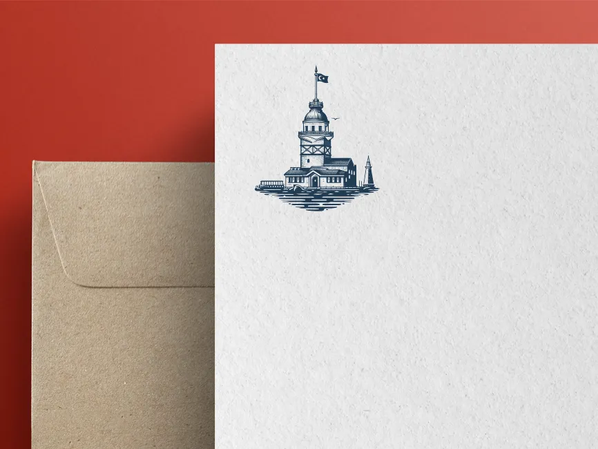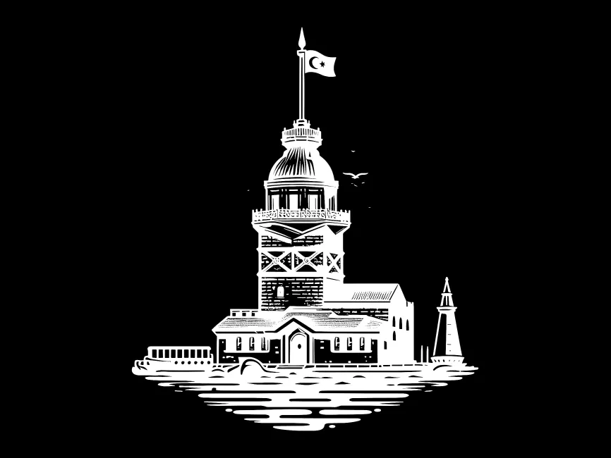 This logo template beautifully represents the Maiden’s Tower (Kız Kulesi), one of Istanbul’s most iconic landmarks. The detailed line-art style captures the architectural essence of this historic structure, which has stood for centuries on the Bosphorus. The logo features the tower with its distinctive dome, flag, and surrounding water, evoking a sense of timelessness and cultural significance.