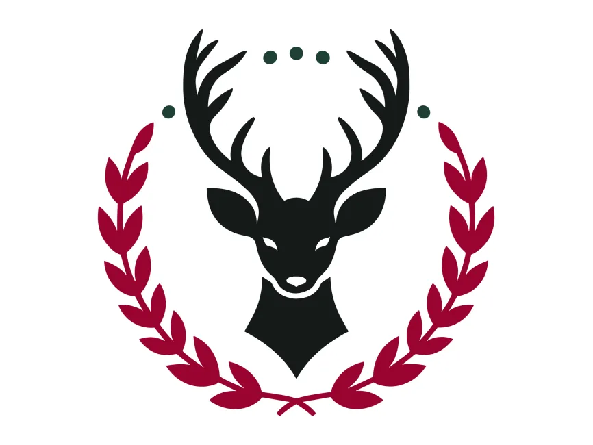Download Abstract Deer Head in Red Wreath logotype design PDF vector and SVG logo Vector Format and PNG Transparent Format, Adobe Illustrator Ai format, EPS Format