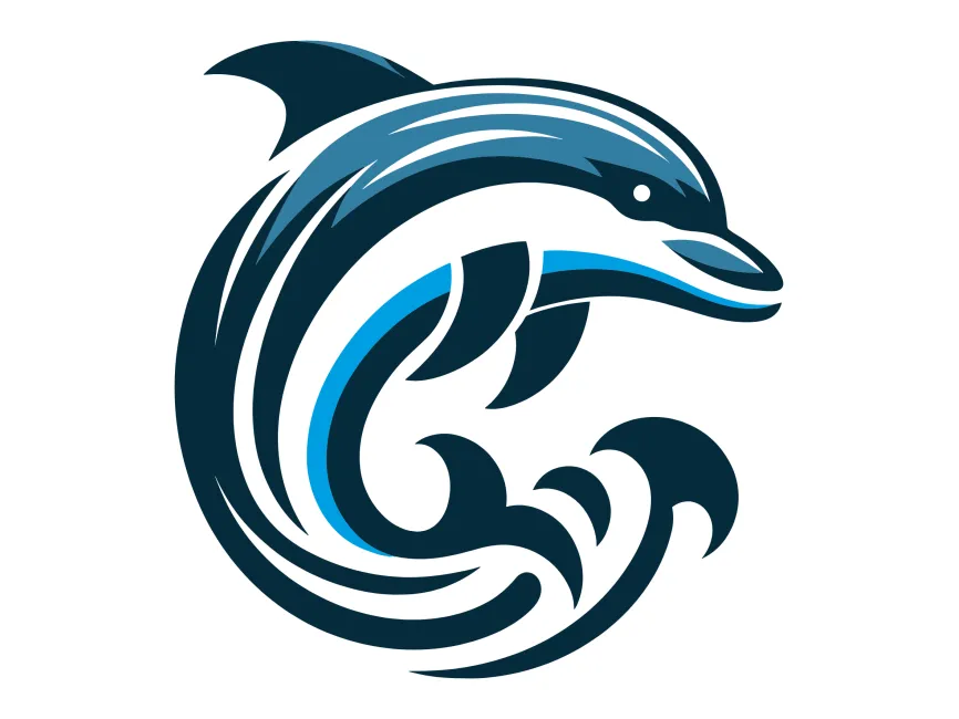 Abstract Dolphin Jumping in the Waves vector logo (SVG, Ai, EPS, PNG and PDF format) Free Download