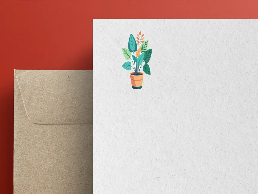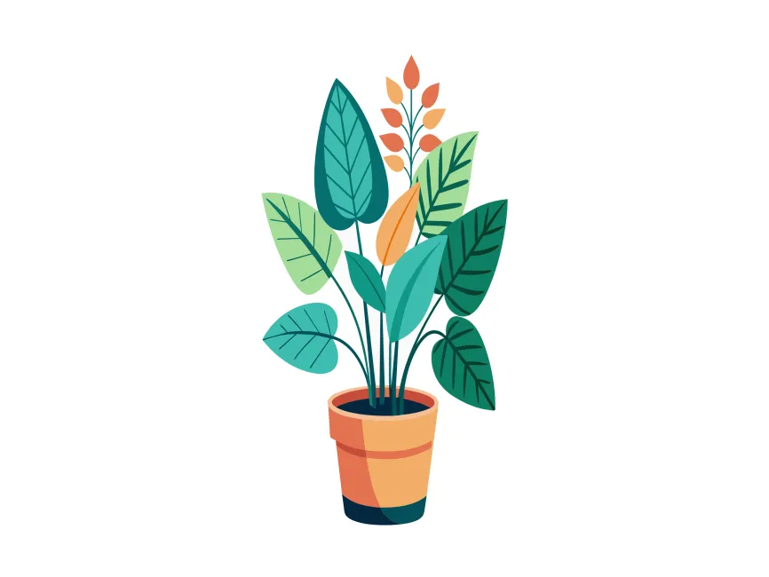 This vector design features a beautifully illustrated potted plant with a mix of green and teal leaves, complemented by subtle orange accents. The modern color palette gives this design a contemporary and artistic touch, making it perfect for graphic design projects, branding, and digital illustrations. The terracotta pot with soft shading adds depth, making it visually appealing for both print and digital media.