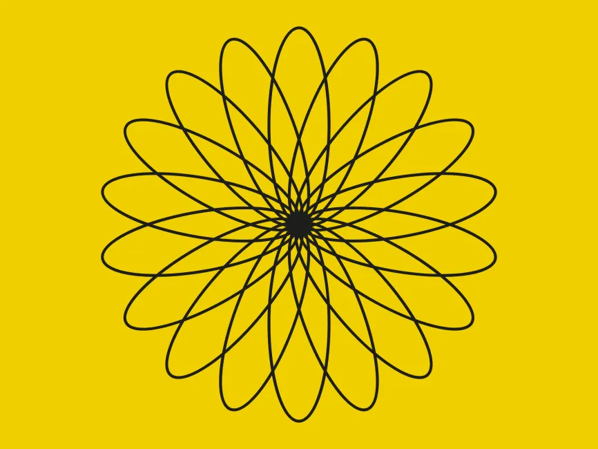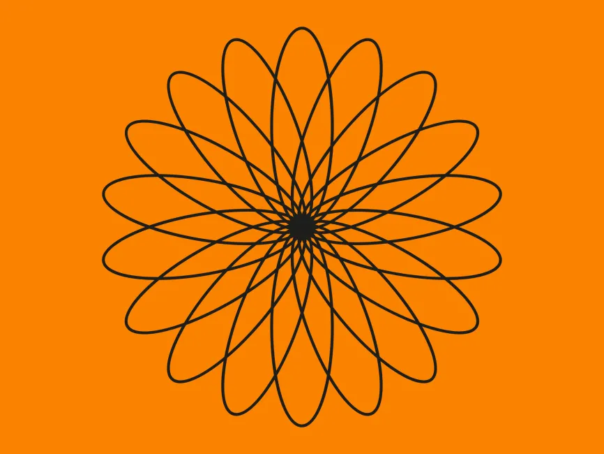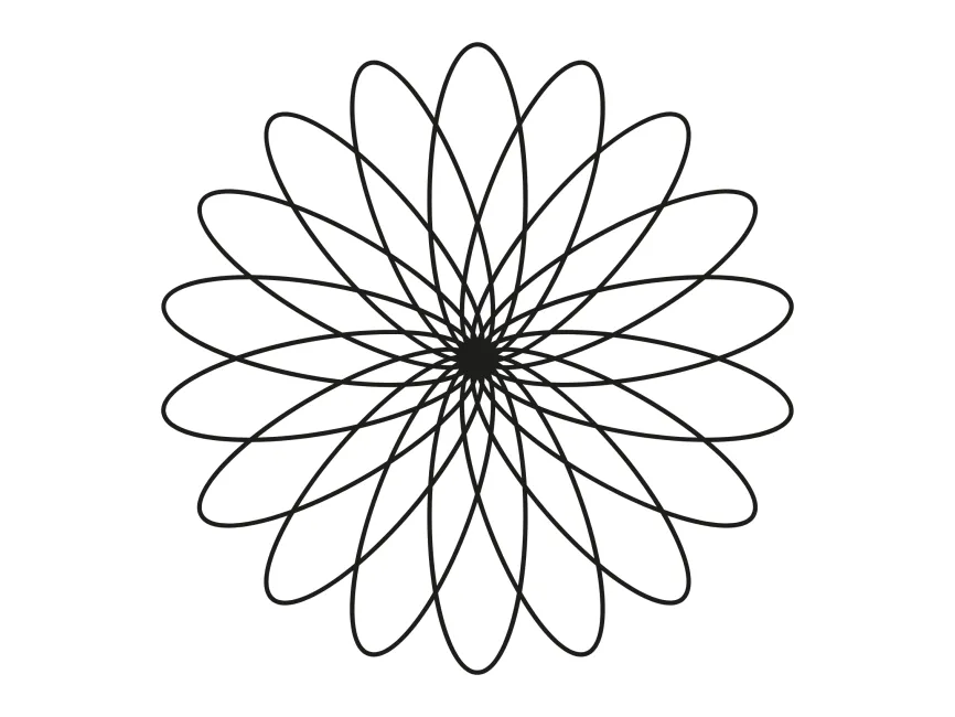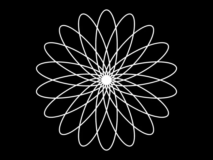 This vector shape is an elegant Harmonic Bloom Spiral, a mesmerizing design created from interwoven elliptical loops forming a radial floral pattern. The seamless symmetry and hypnotic flow make it an ideal asset for logo design, branding, and artistic applications in modern and luxury industries.