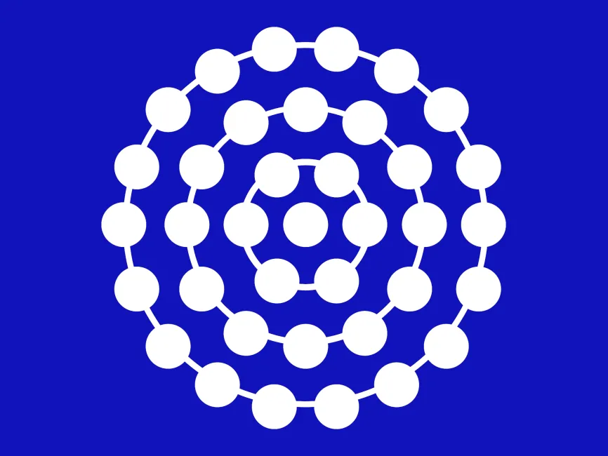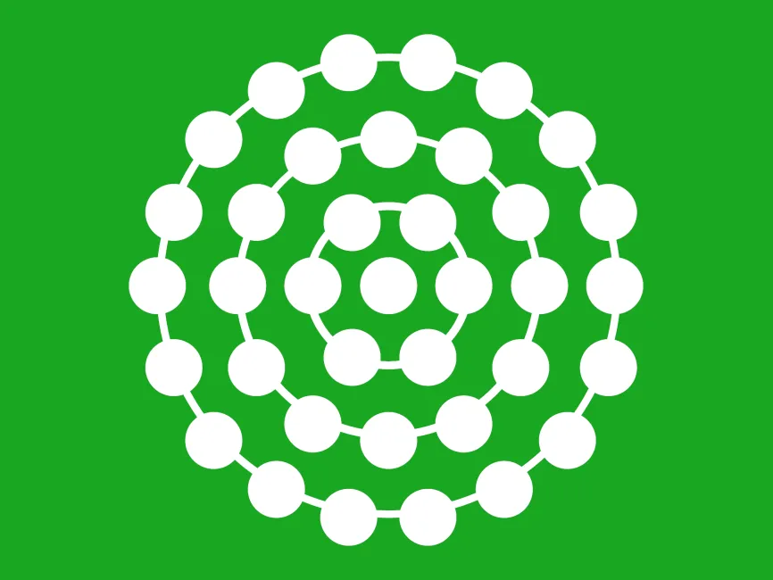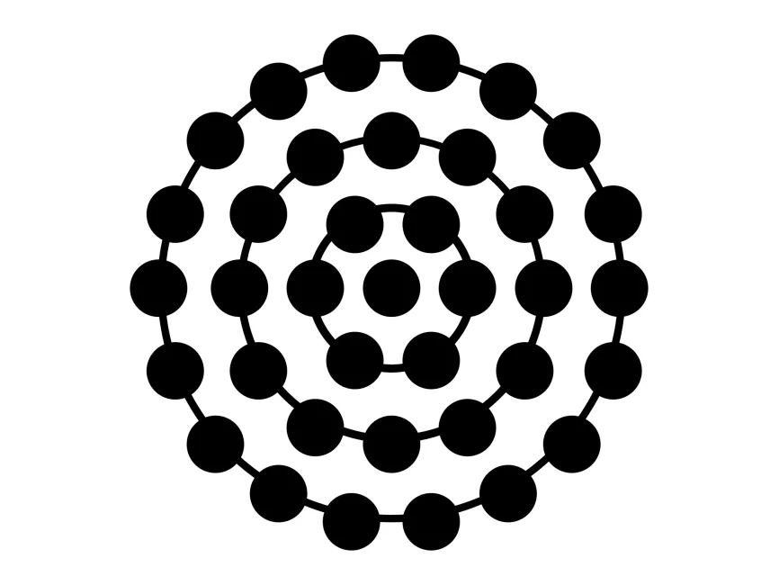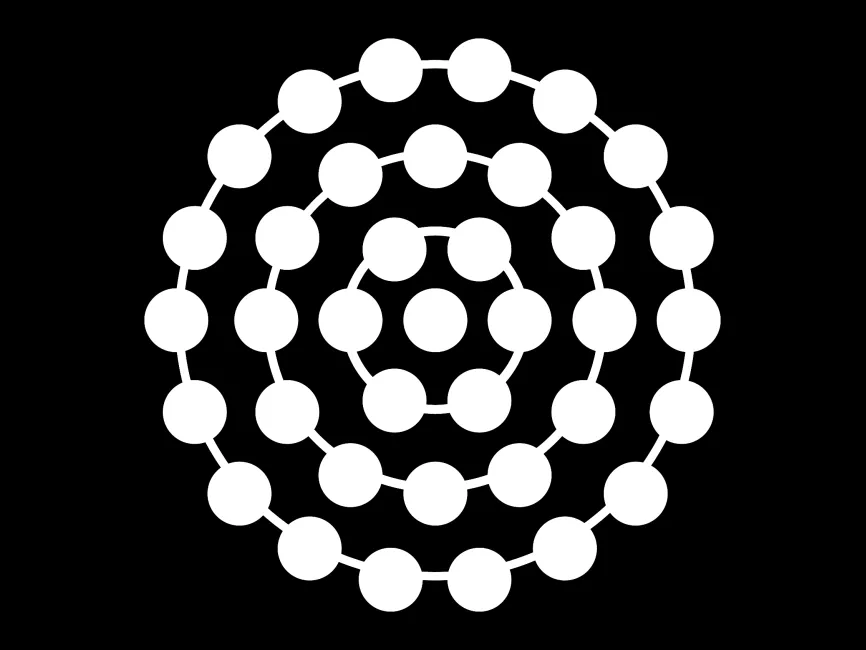 This geometric vector shape features a multi-layered circular structure with evenly spaced nodes, resembling an atomic orbital model. The interconnected circular design conveys a sense of science, connectivity, and structured complexity, making it an ideal element for technology, research, and futuristic branding.