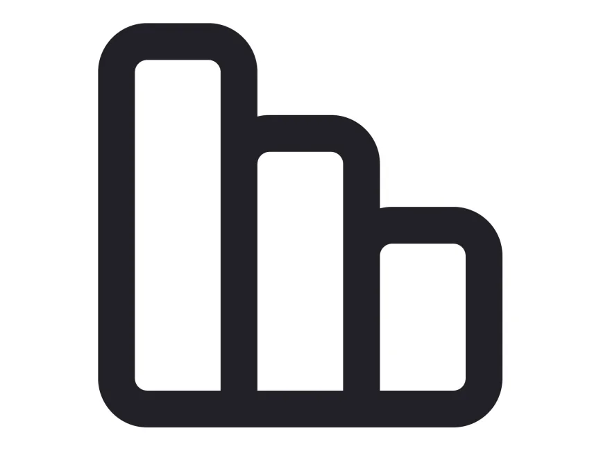 The icon strongly resembles a bar chart or column graph visual used in dashboards, reports, and business intelligence tools. It consists of three parallel vertical columns that rise from the same baseline but differ in height, effectively symbolizing progression or comparison. The rounded corners soften its overall appearance, giving it a modern and user-friendly aesthetic, while the consistent line thickness adds to its visual stability.