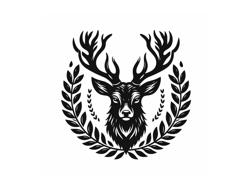 Download Big Horn Deer in Wreath logotype design PDF vector and SVG logo Vector Format and PNG Transparent Format, Adobe Illustrator Ai format, EPS Format