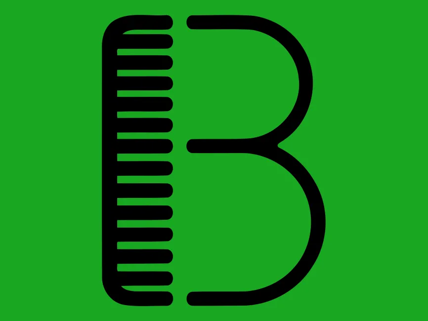 This logo template features a creative and playful design that combines the letter "B" with the visual imagery of a comb. The vertical left side of the "B" is cleverly designed to resemble the teeth of a comb, which gives this logo a very distinct and memorable look. The rounded curves of the "B" are smooth and minimalistic, creating a modern, clean aesthetic.