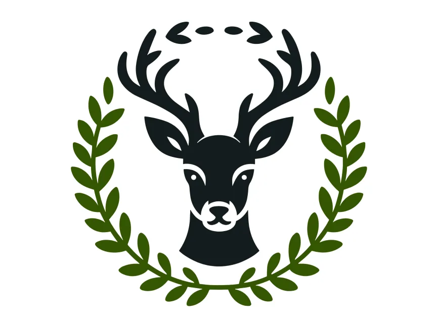 Black Deer in Green Wreath vector logo template SVG, Ai, EPS, PNG and PDF format free download