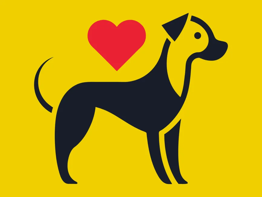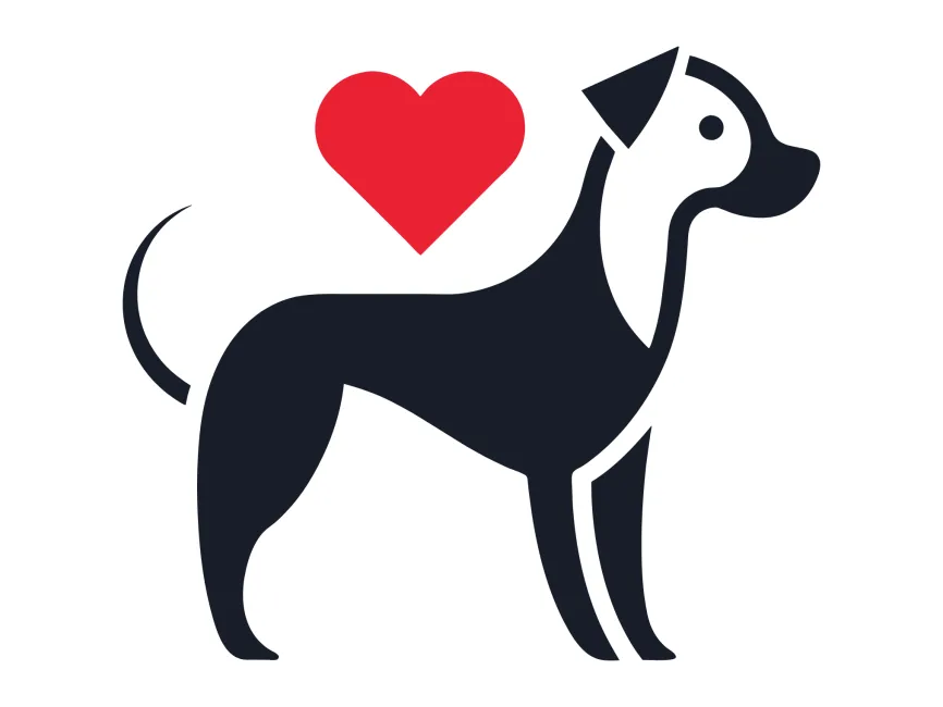 This logo template features a stylized dog with a red heart, symbolizing love, loyalty, and care. The minimalist black and white dog silhouette combined with the bold red heart creates a modern, professional, and emotional design, making it ideal for pet-related businesses, veterinary services, and animal welfare organizations.