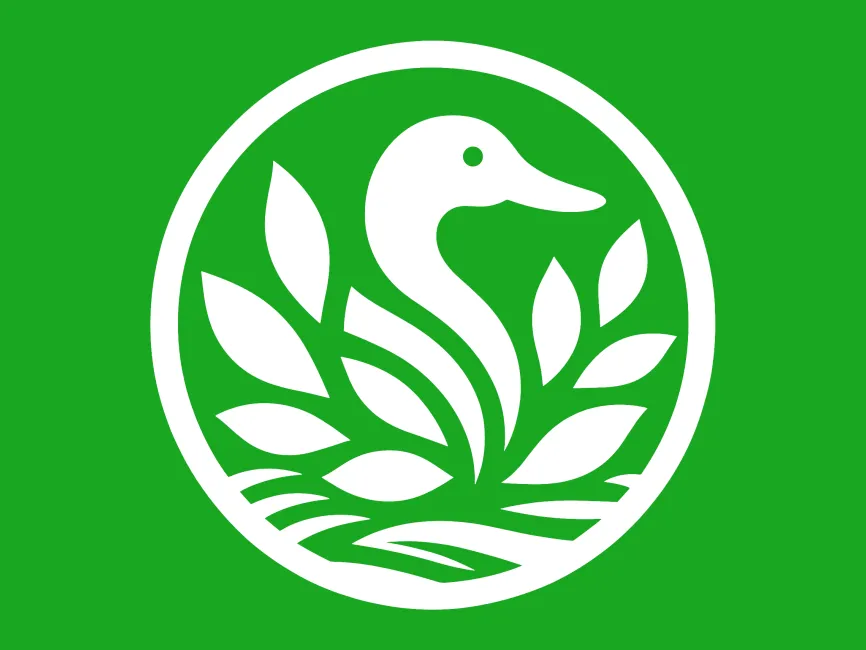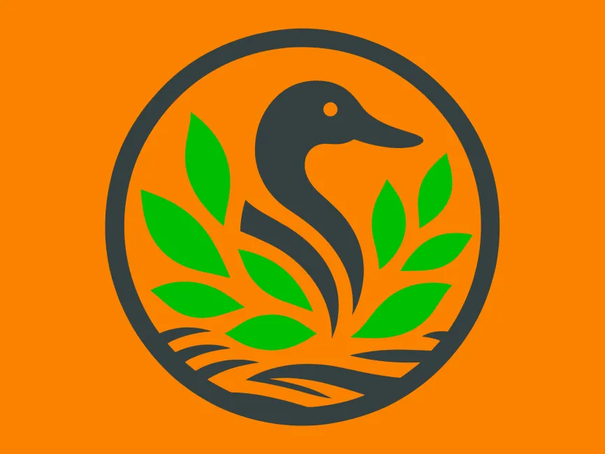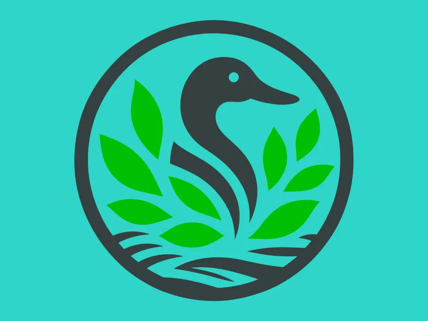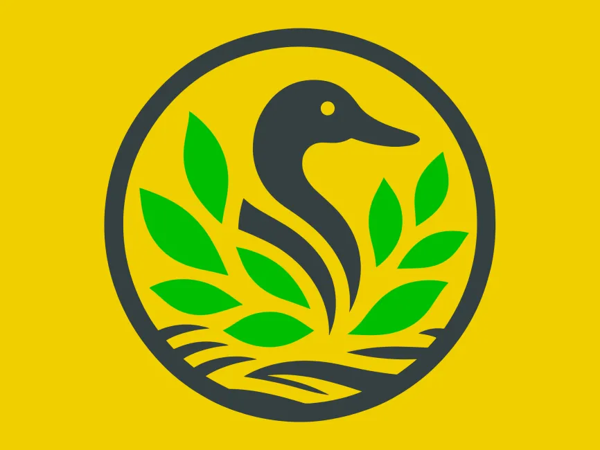 Free Download Black Duck with Green Leaves in Circle Shape vector logo template shape SVG, PNG and PDF format.