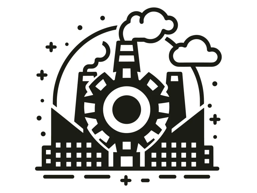 Download Black Factory Plant with Big Gear vector logo in SVG, PDF, CDR, EPS, Ai and PNG format from Logowik.com