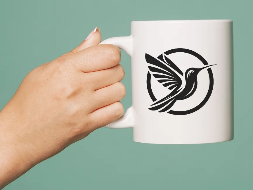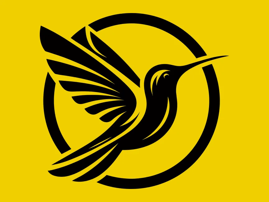 This is not a letter logo, nor does it represent a specific character. Its identity is shaped purely through the stylized image of a hummingbird and circular geometry.