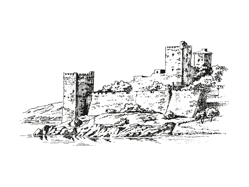This vector design presents a masterfully detailed ink-style illustration of Bodrum Castle, one of Turkey’s most iconic medieval landmarks. Nestled along the coastline, the fortress is depicted with precision and artistic finesse, capturing its robust towers, fortified stone walls, and natural rocky base. The drawing echoes the historical weight and architectural brilliance of this centuries-old structure.