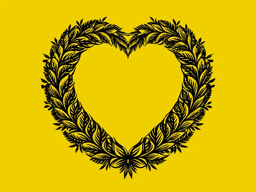 - Structure: A symmetrical heart shape made from interwoven leaves, forming a lush and detailed wreath.