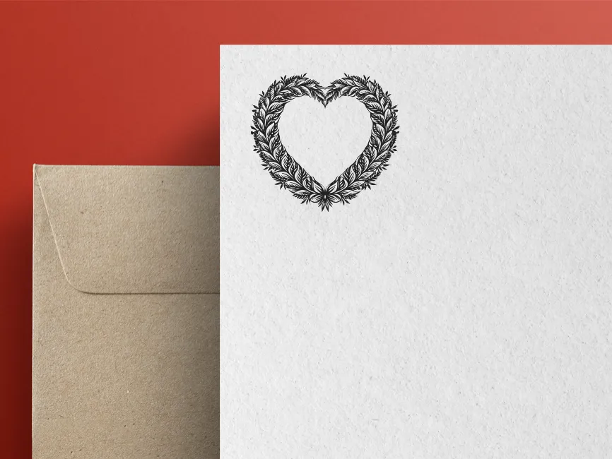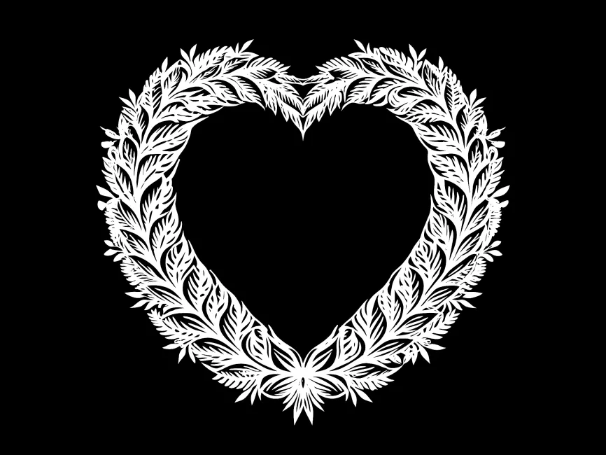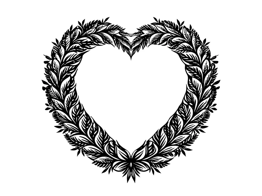 This elegant botanical heart wreath is a beautifully detailed vector shape, perfect for brands that focus on nature, romance, and elegance. The intricate arrangement of leaves and floral elements gives it an organic and artistic touch, making it an excellent choice for wedding, beauty, and eco-friendly industries.