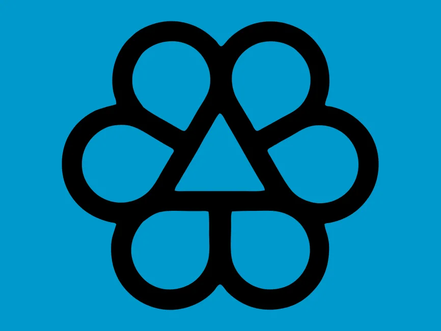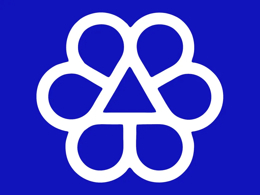 This logo template features a stylized flower shape, where each petal is created with a rounded, symmetrical outline. At the center of the flower is a triangle, possibly symbolizing stability or direction. The overall design appears minimalistic and modern, with clean lines and bold contours.
