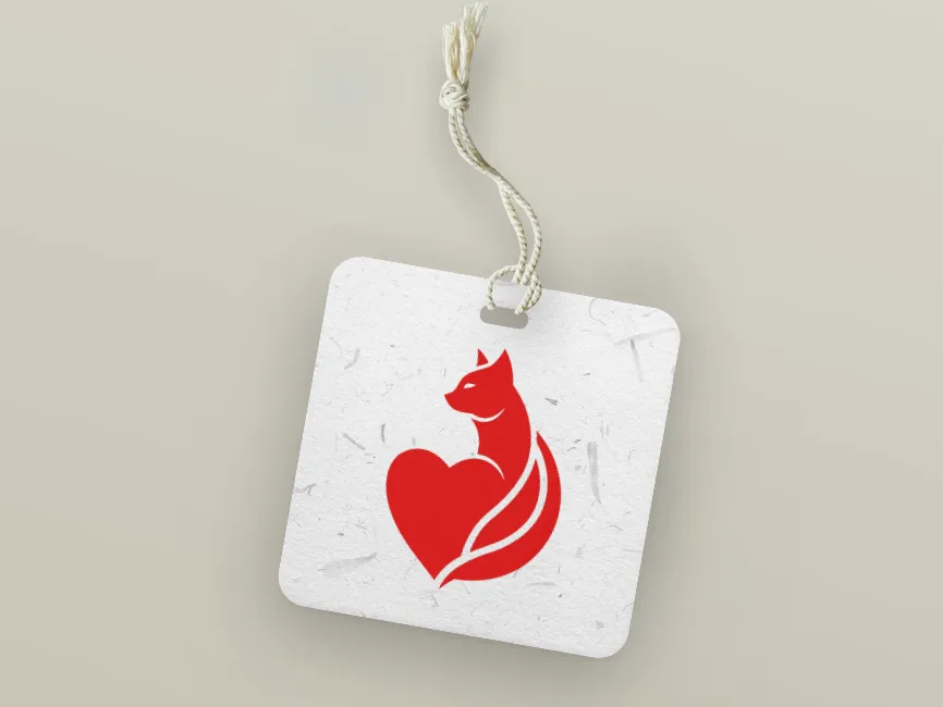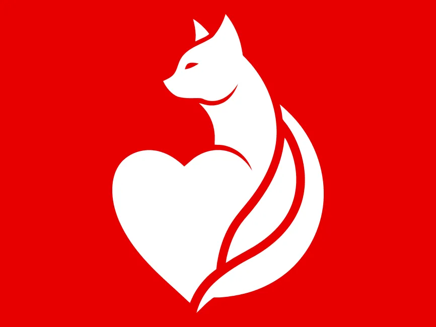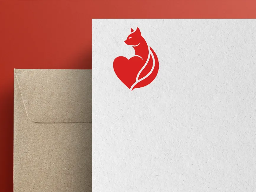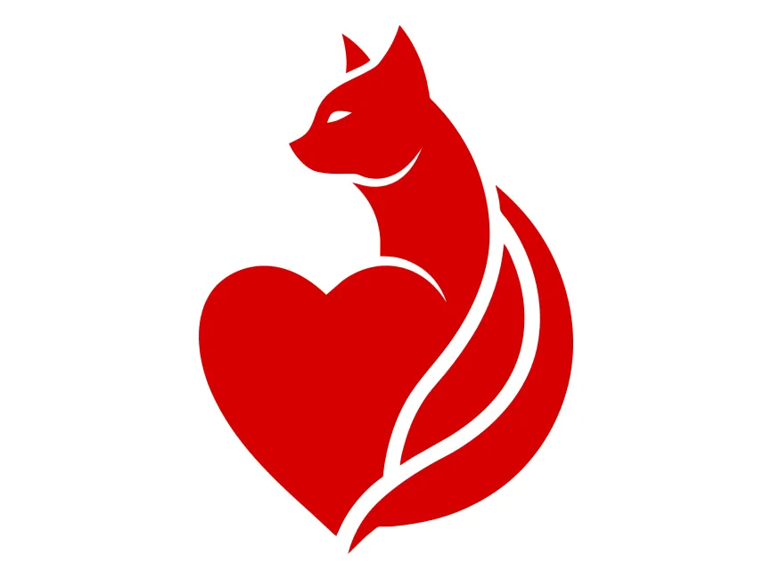 This vector template features a gracefully designed cat intertwined with a heart, creating a visually striking and symbolic emblem. The bold red color enhances its warm and loving appearance, representing passion, care, and companionship. The seamless fusion of the cat and heart shape makes it an excellent design element for brands that emphasize love, protection, and connection.