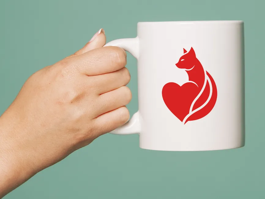 The cat’s sleek and minimalistic silhouette merges beautifully with the heart, forming a cohesive and artistic shape. The smooth curves and sharp details create a balanced aesthetic. The cat’s head is positioned elegantly, with a subtle gaze that conveys wisdom, warmth, and comfort. Meanwhile, the heart shape is enriched with a dynamic flowing line, adding movement and depth to the design.