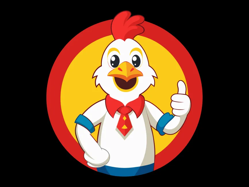 This logo template showcases a friendly and professional chicken mascot, designed with a clean and modern cartoon style. The character wears a red tie and rolled-up sleeves, giving it a balance between formality and approachability. With a bright smile and a thumbs-up gesture, this design conveys trust, positivity, and high-quality service, making it an excellent choice for restaurant branding, fast food chains, and poultry-related businesses.