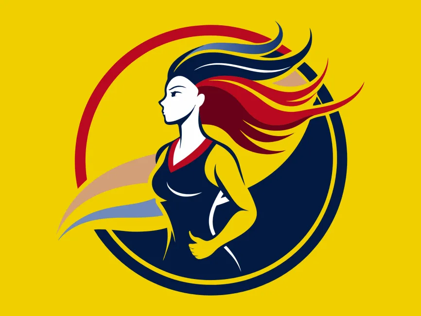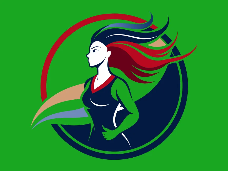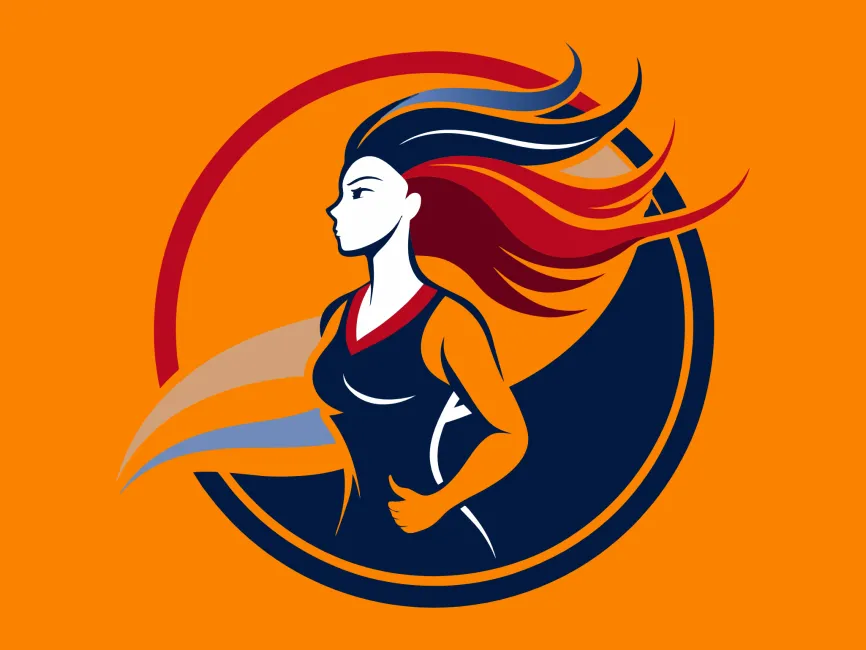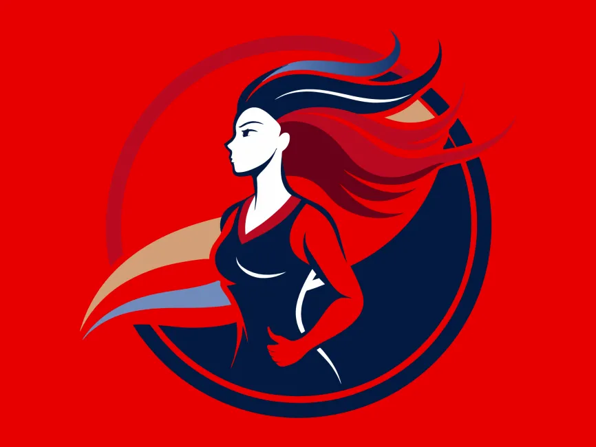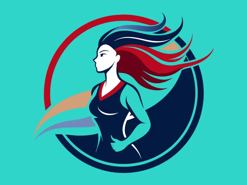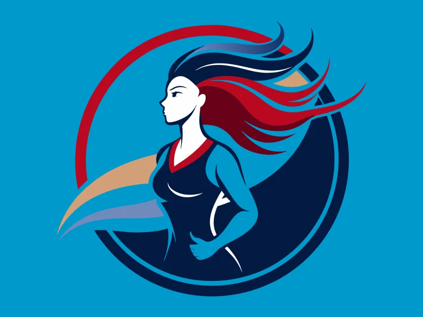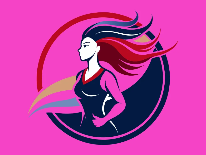 Circle Athlete Woman Running with Hair Blowing in Wind vector logo template (SVG, Ai, EPS, PNG and PDF format) Free Download