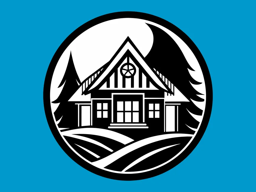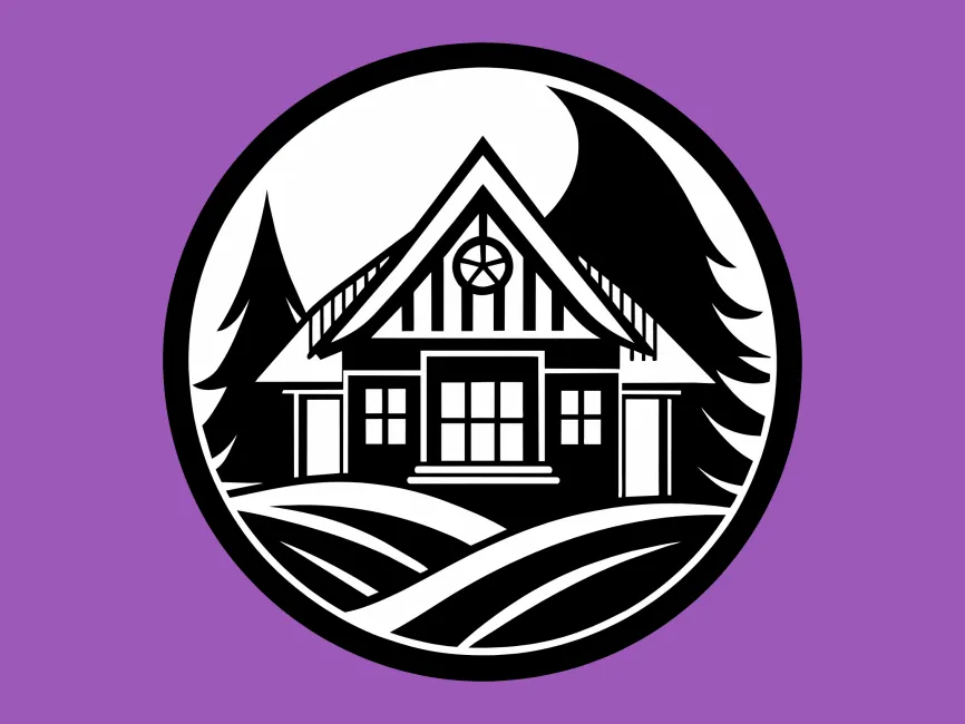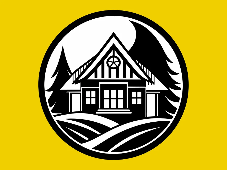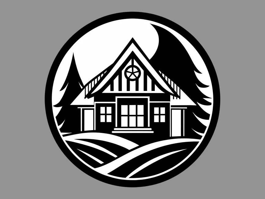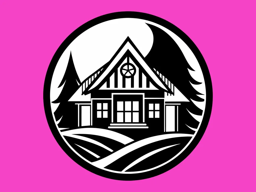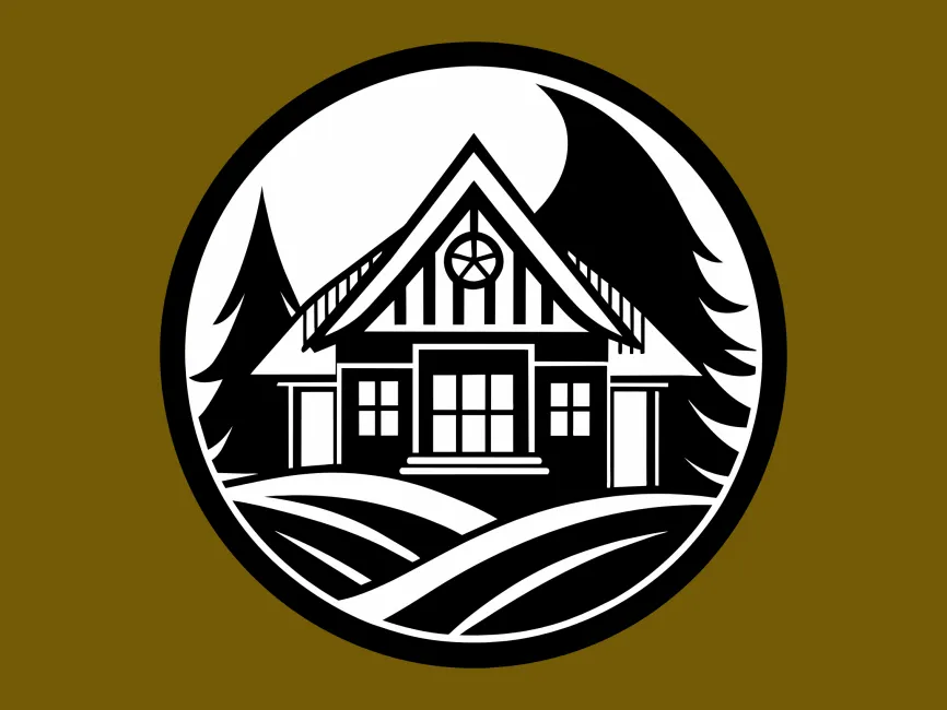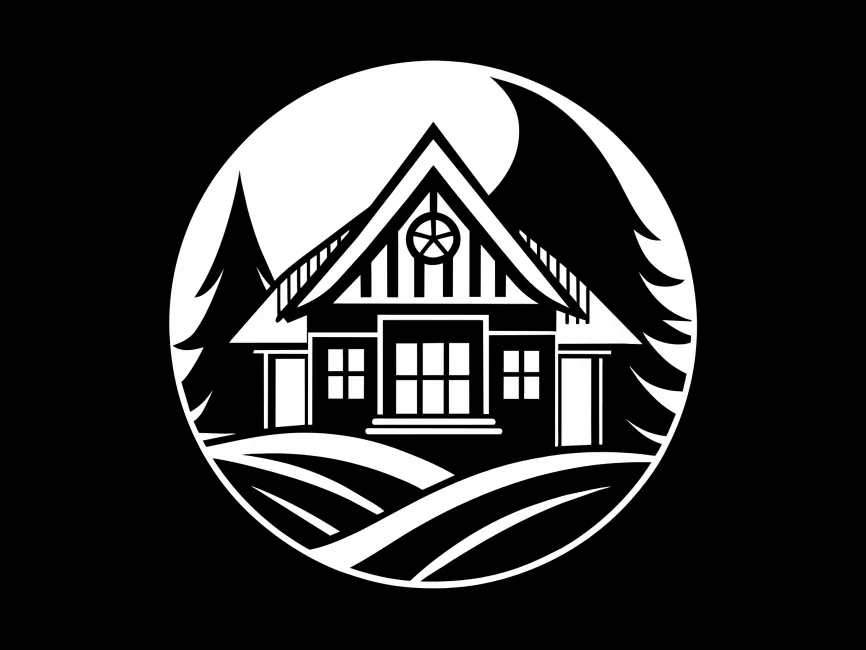 Circle Cottage in Forest vector logo (SVG, Ai, EPS, PNG and PDF format) Free Download.