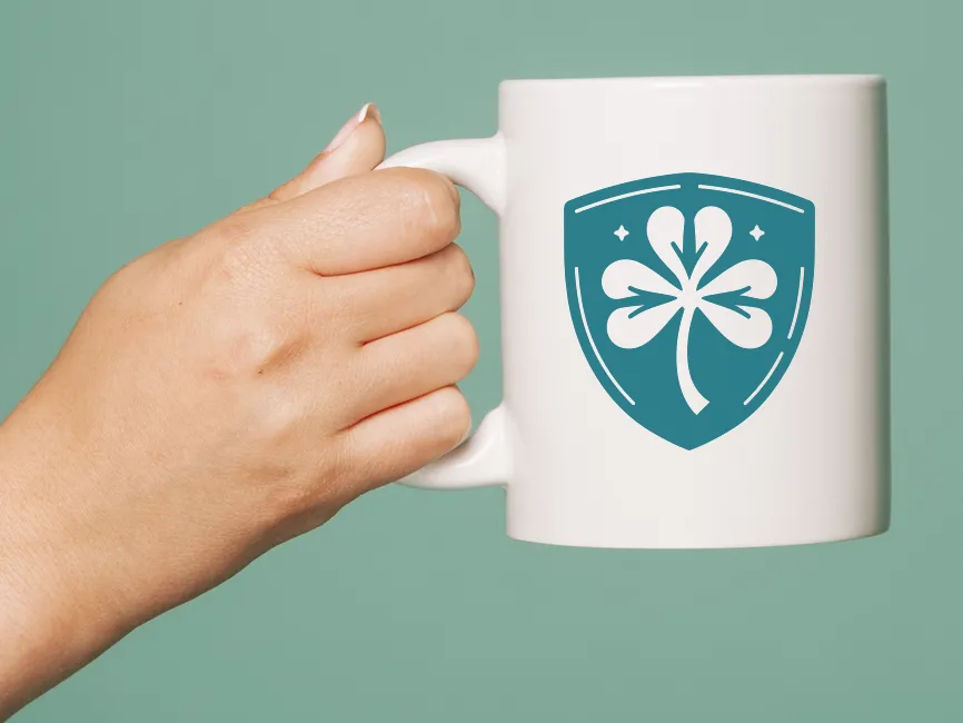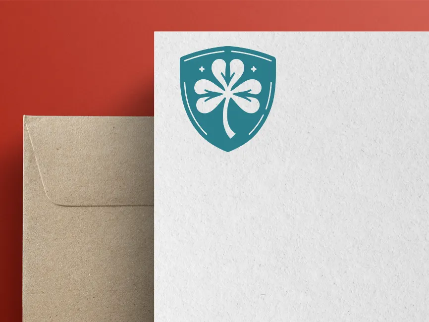 Download Clover in Shield Shape logotype PDF vector and SVG logo template, free vector Format and PNG Transparent Format.