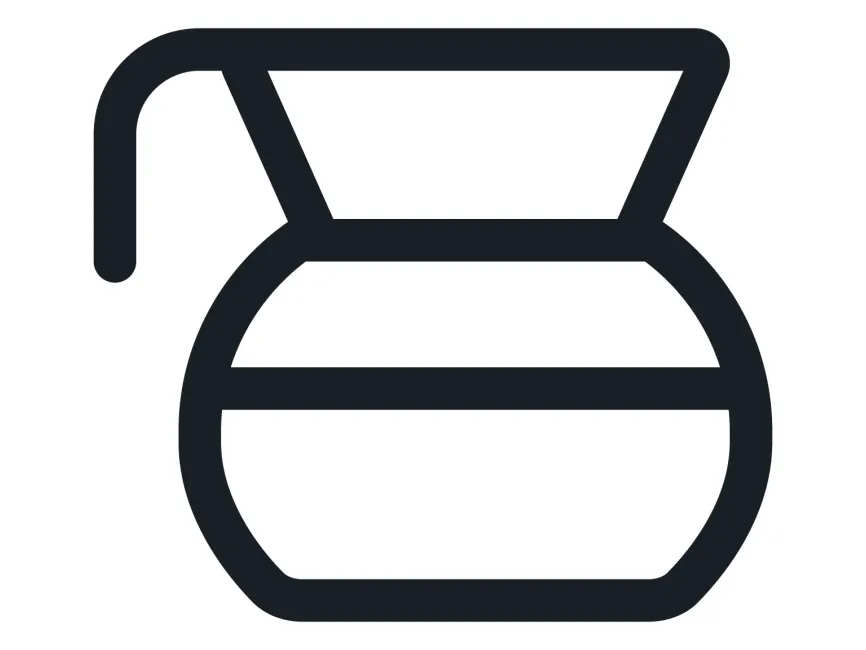 This icon is a refined and instantly recognizable depiction of a coffee carafe — the iconic glass pot used in drip coffee machines. With its balanced curves, angular neck, and functional handle, this symbol embodies the universal language of coffee culture. Rendered in a clean monoline style, it delivers both charm and clarity for use in modern branding, café websites, and mobile interfaces.