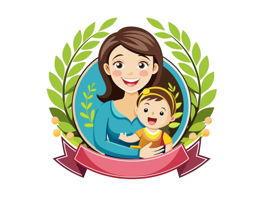 Colored Mother and Baby Ilustration with Flowers and Ribbon vector design (SVG, Ai, EPS, PNG and PDF format) Free Download