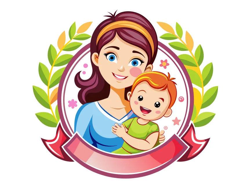 Colored Mother and Baby Ilustration with Ribbon vector (SVG, Ai, EPS, PNG and PDF format) Free Download