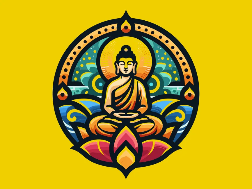 This vector design is a radiant and balanced depiction of the meditating Buddha seated atop a multi-layered lotus, enclosed within a circular mandala structure. With its rich color gradients, ornate detailing, and symbolic composition, it’s a perfect asset for graphic designers, wellness entrepreneurs, and branding professionals seeking meaningful and striking visuals.