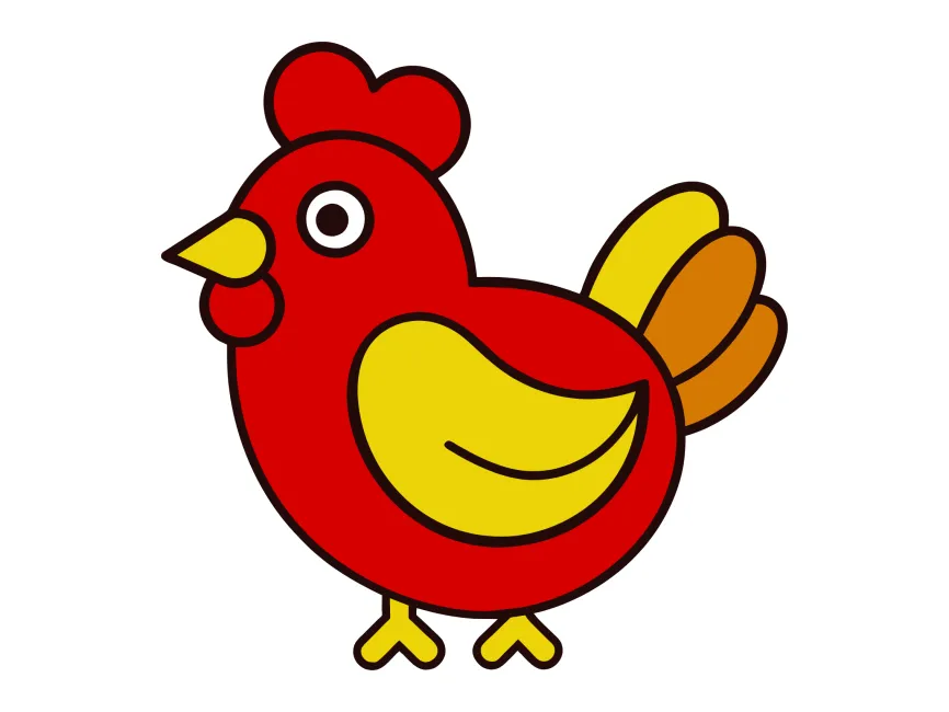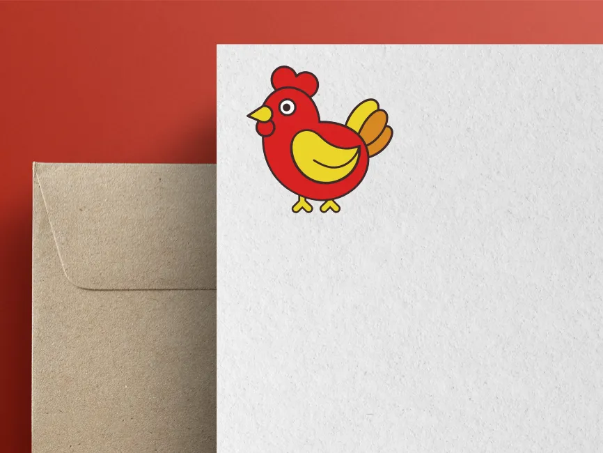This logo template showcases a bright and cartoon-style chicken illustration, designed with vivid red, yellow, and brown colors. The logo has a playful yet balanced composition, making it ideal for businesses that want to communicate freshness, quality, and approachability. It is particularly suited for poultry farms, food packaging companies, fast-food restaurants, and children-focused food brands.