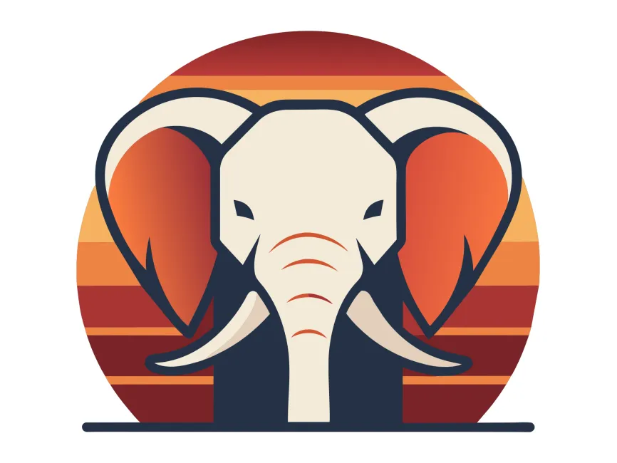 Vibrant Colors: The use of bright and varied colors in the elephant illustration makes the logo stand out and attract attention. This colorful palette can help brands create a lively and engaging image.