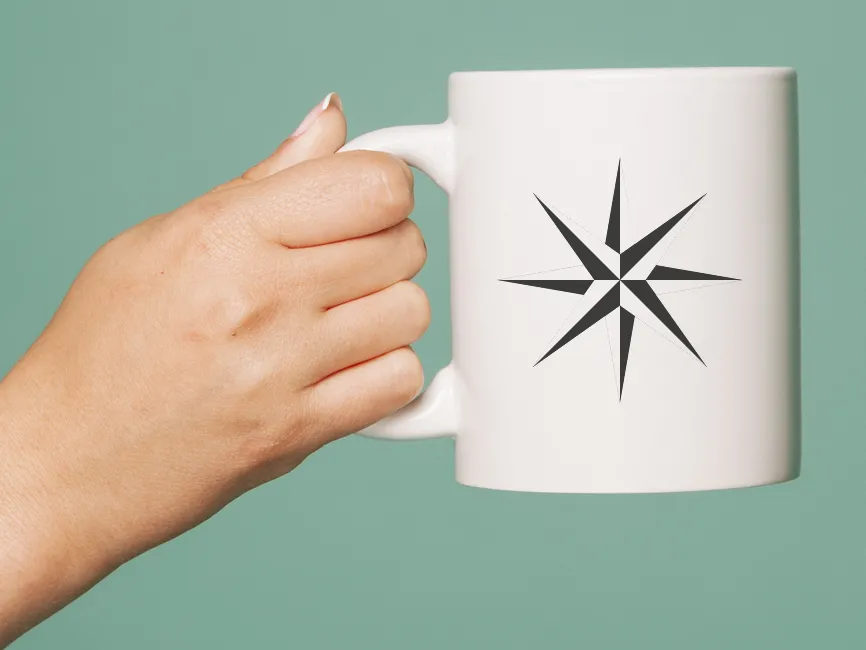 The Compass Star consists of eight elongated triangular points, arranged symmetrically around a central point. The alternating bold and thin sections add depth and dimension, enhancing its visual appeal. The precise geometry conveys a sense of stability, direction, and exploration, making it a strong and versatile design choice.