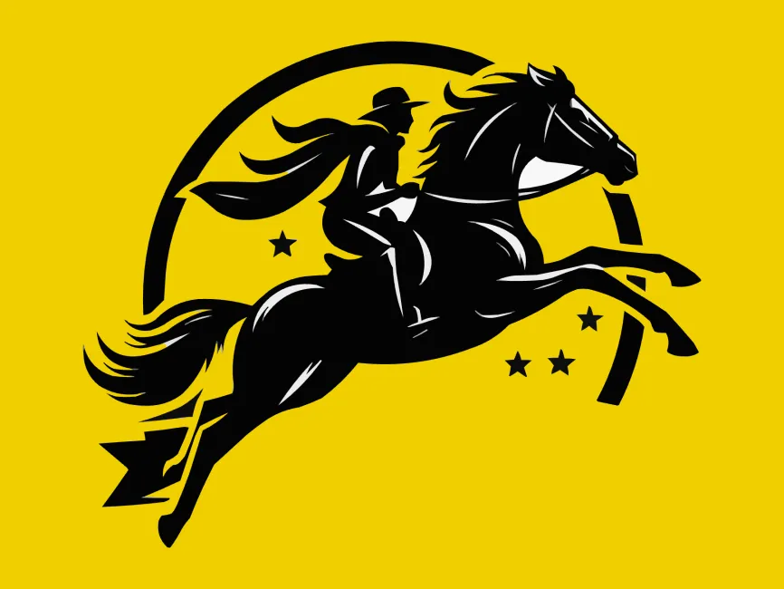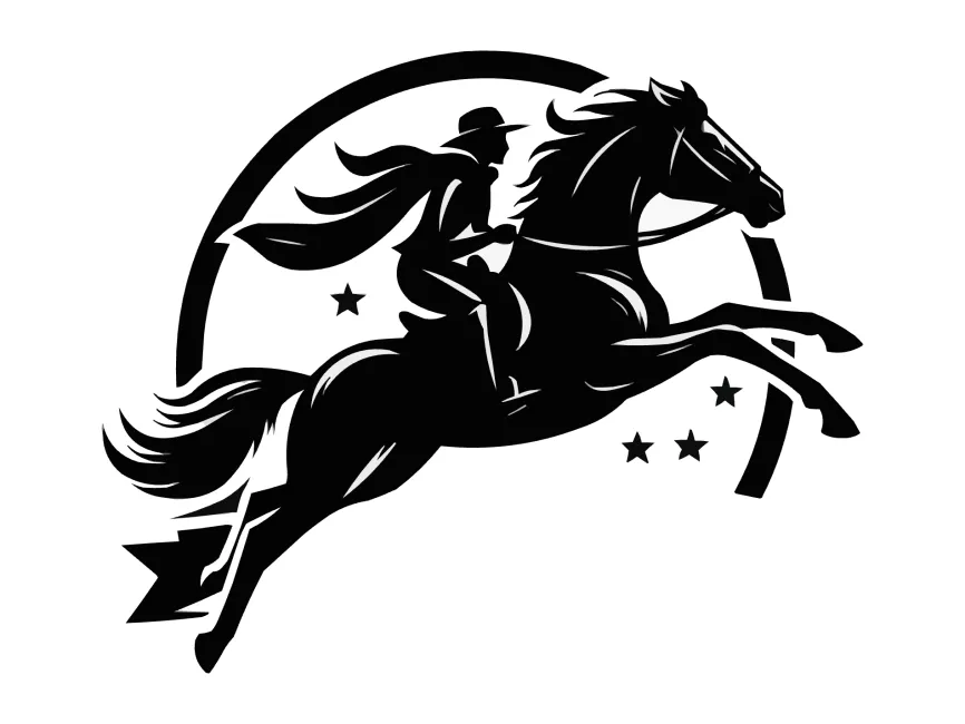 With its strong silhouette, western motifs, and star accents, this design delivers bold brand storytelling with minimal elements. It communicates heroism, motion, and tradition—ideal for adventurous or heritage-driven logo brand identities.