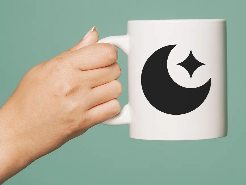 This design features a crescent moon with a star positioned inside, creating a serene and celestial aesthetic. The combination of the moon and star is often associated with night, guidance, spirituality, and cosmic harmony, making it ideal for branding in wellness, astrology, and cultural symbolism.