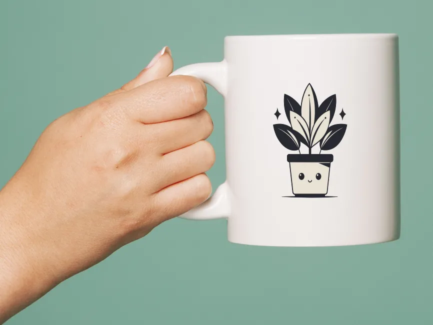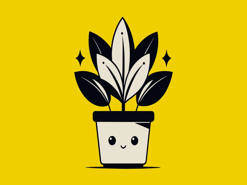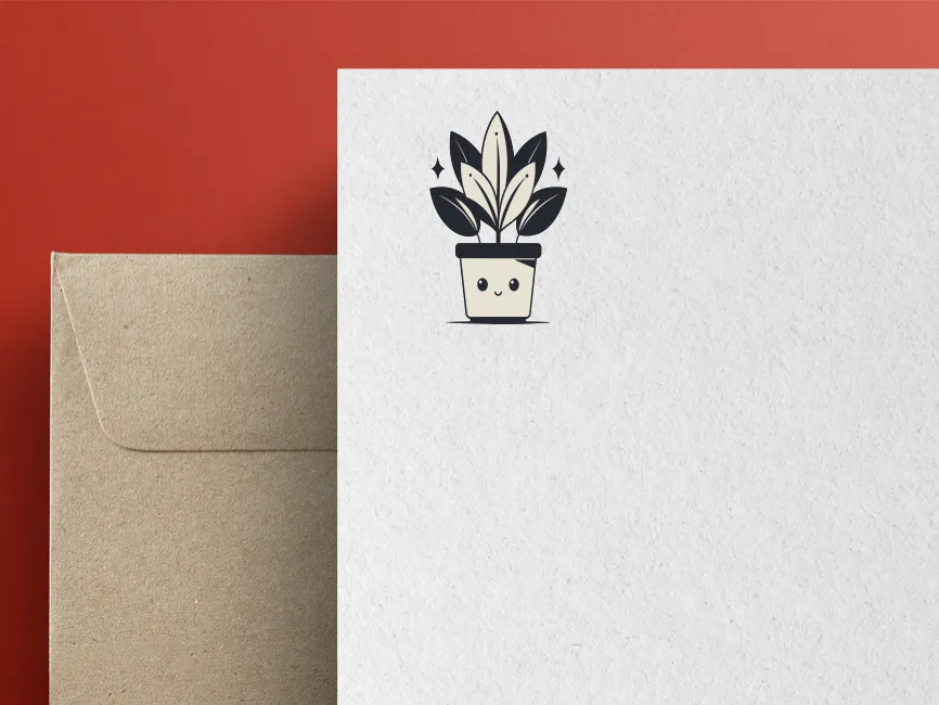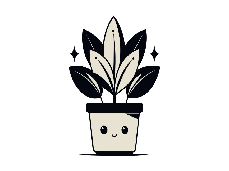 This adorable vector design features a minimalist potted plant with a cute smiling face, creating a playful and modern aesthetic. The use of simple geometric shapes, bold black outlines, and soft beige tones gives this design a clean and stylish appearance. Sparkling details around the plant add an extra touch of charm, making it perfect for fun, decorative, and kawaii-style designs.