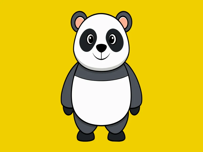 This adorable panda vector illustration features a friendly, round-bodied panda with a joyful expression. The design uses a clean and modern cartoon style, making it perfect for various digital and print applications. With its big, expressive eyes, soft curves, and playful posture, this panda illustration exudes charm and warmth, making it a versatile choice for branding, children’s content, and merchandise.