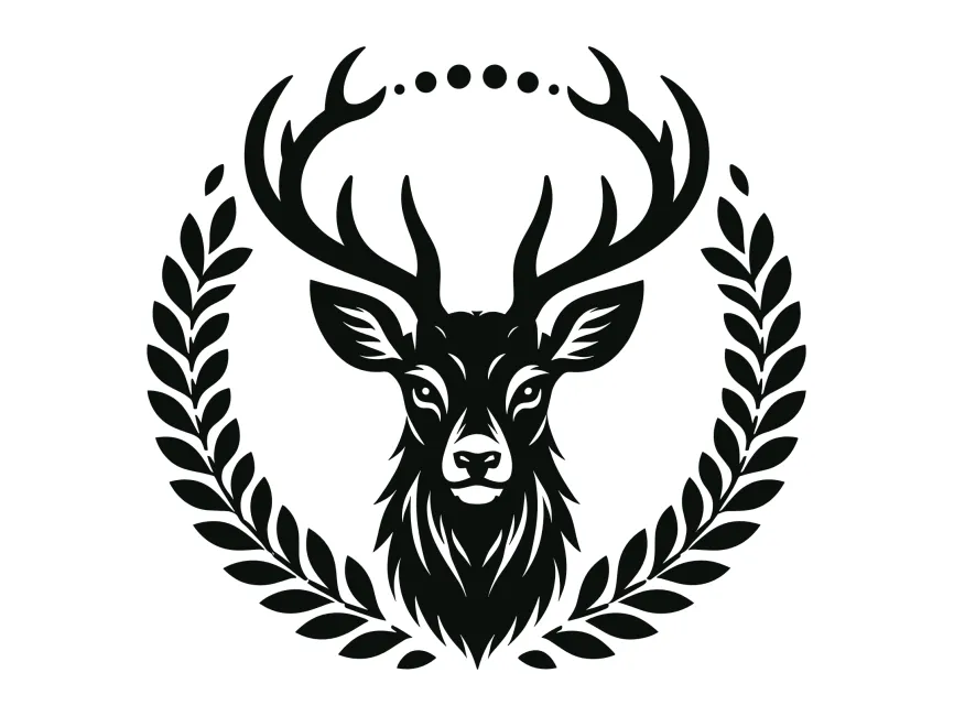 Deer Illustration in Wreath vector logo template SVG, Ai, EPS, PNG and PDF format free download