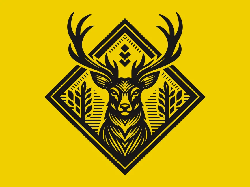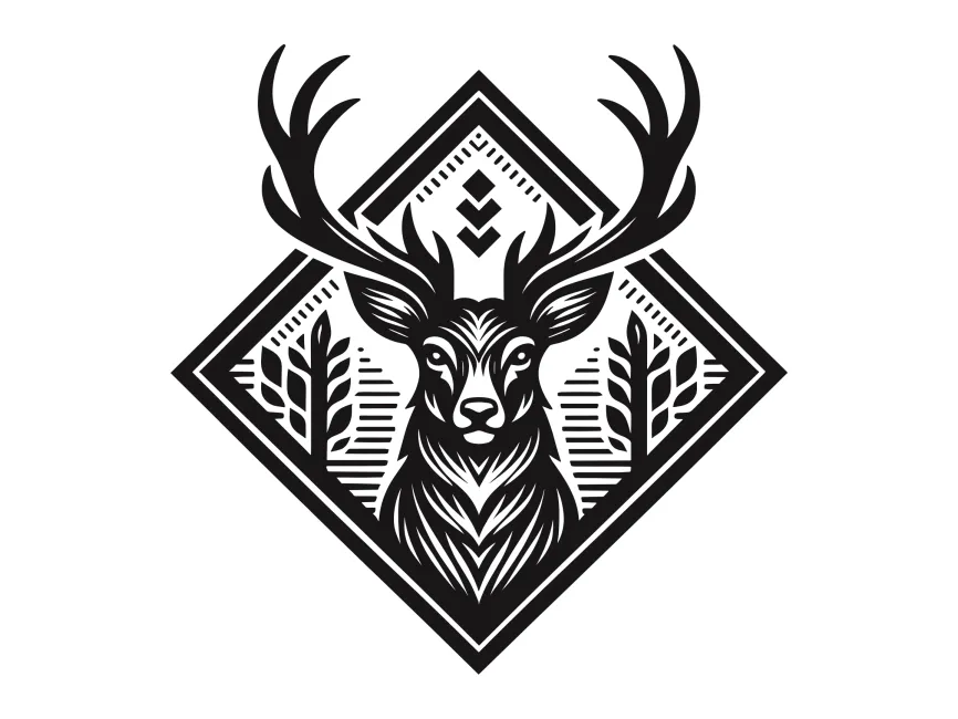 Download Deer Silhouette in Floral Square logotype design PDF vector and SVG logo Vector Format and PNG Transparent Format, Adobe Illustrator Ai format, EPS Format