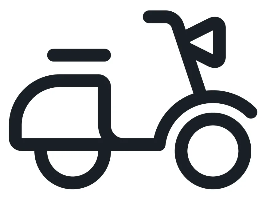 This icon illustrates a motorized delivery scooter in a bold, minimal outline style, designed to represent fast and efficient urban delivery services. With its clean structure, dynamic posture, and clear functional components like wheels, cargo box, and delivery flag, this icon is ideal for modern logistics, online shopping, and food delivery platforms. It's the perfect asset for designers building sleek, mobile-first branding experiences.
