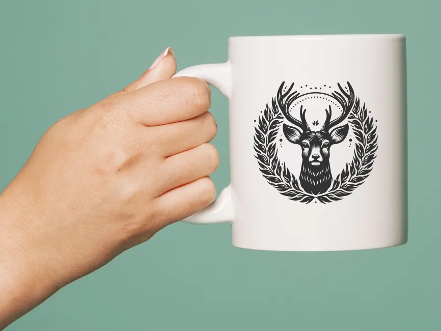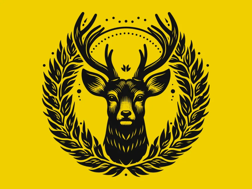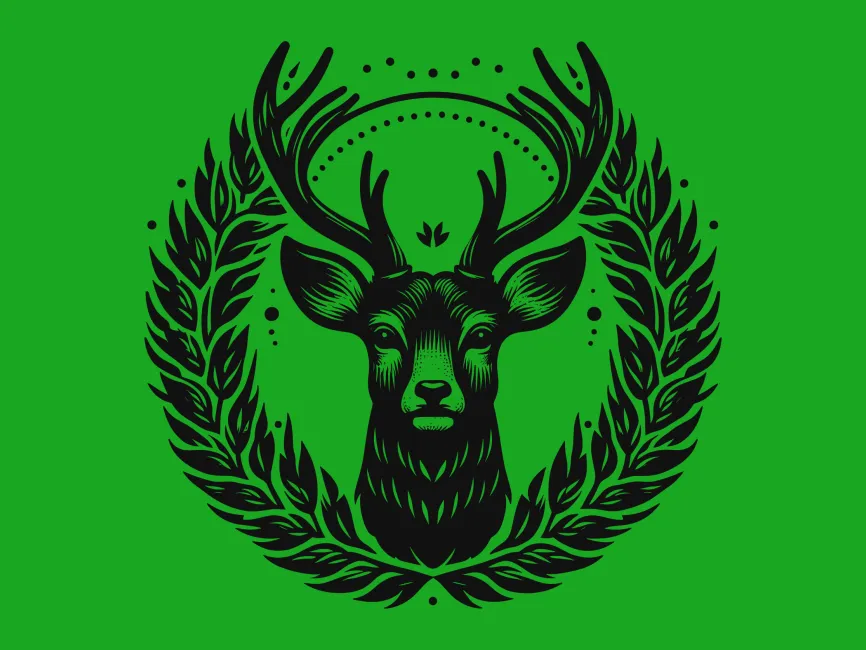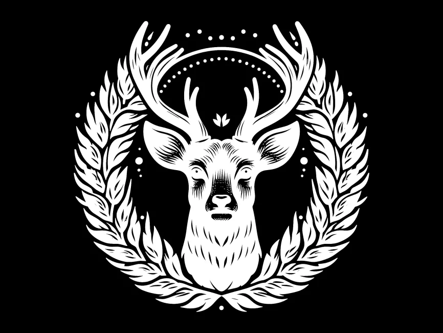 Detailed Deer Head with Wreath vector logo template SVG, Ai, EPS, PNG and PDF format free download
