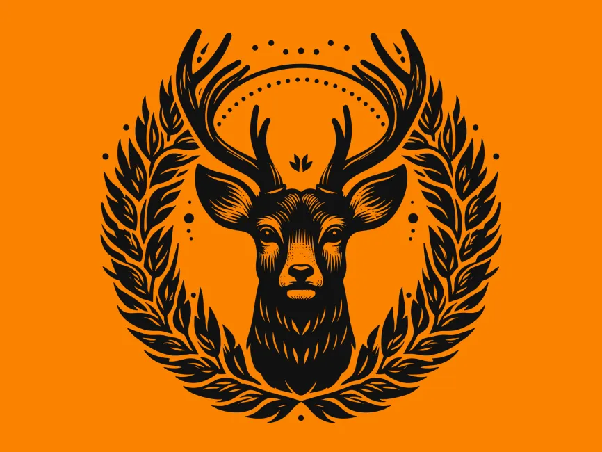 Download Detailed Deer Head with Wreath logotype design PDF vector and SVG logo Vector Format and PNG Transparent Format, Adobe Illustrator Ai format, EPS Format