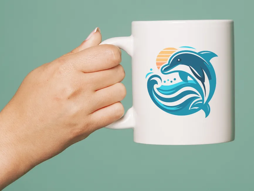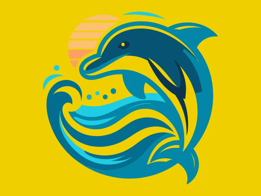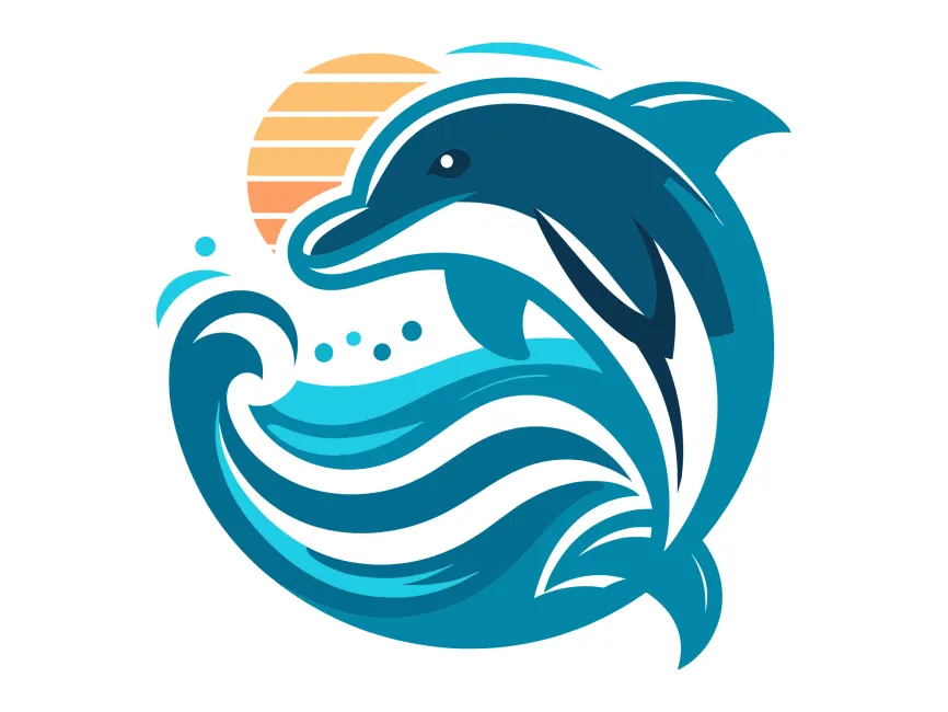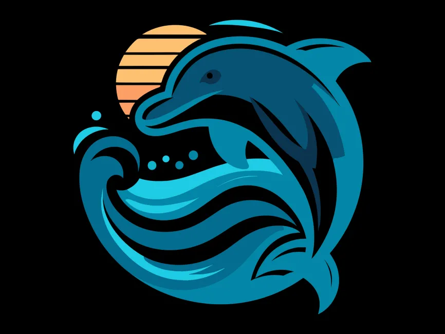 Dolphin Jumping in the Waves and Sun vector logo (SVG, Ai, EPS, PNG and PDF format) Free Download