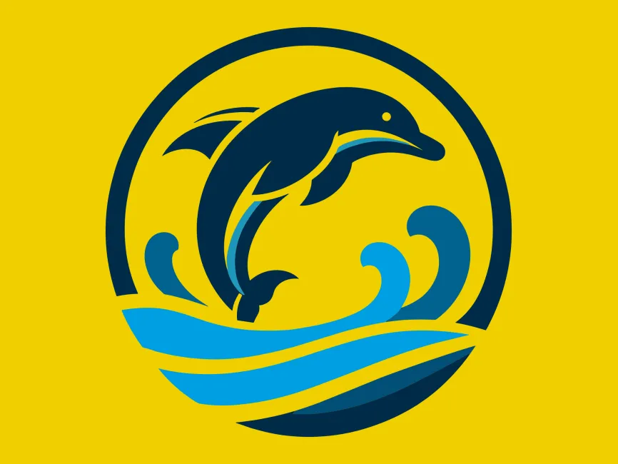 Dolphin Jumping in the Waves in Circle Shape vector logo (SVG, Ai, EPS, PNG and PDF format) Free Download