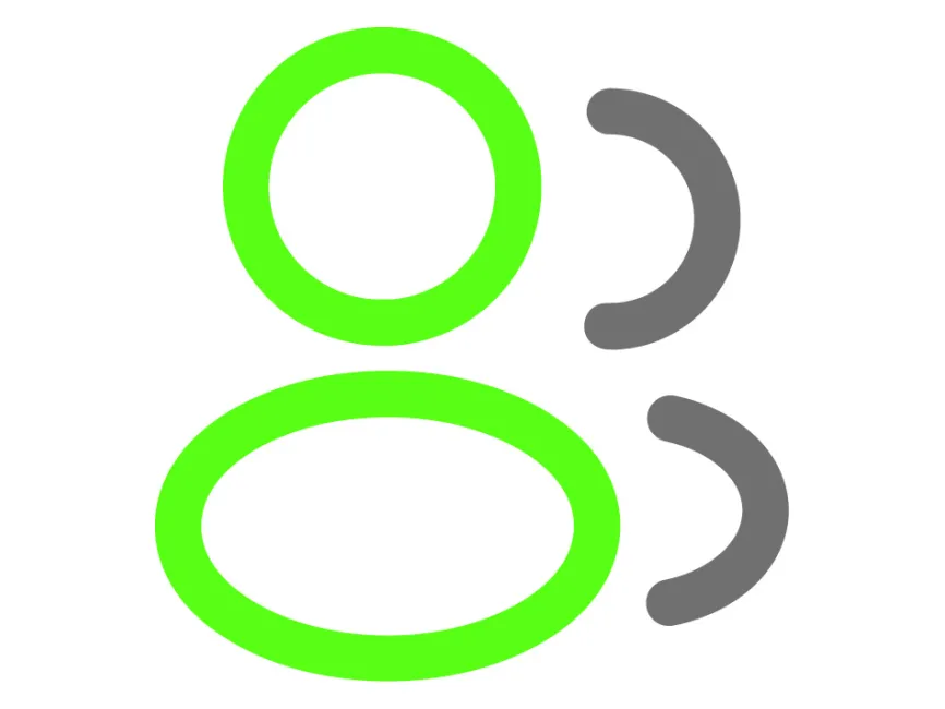 This icon features a modern and abstract depiction of two people, illustrated using a bold, neon green and gray color palette. The primary structure consists of a green circle above a green horizontal oval, clearly evoking the simplified outline of a human head and body—typical in user profile or community representations.