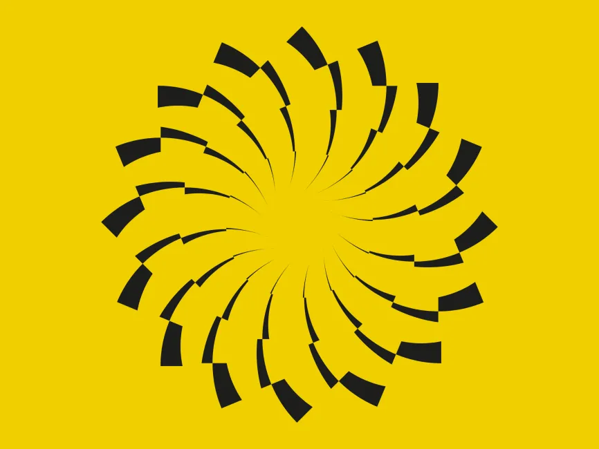This abstract vector shape features a dynamic, swirling pattern reminiscent of a vortex or a futuristic windmill. Its unique structure is composed of multiple curved segments radiating outward from a central point, creating a sense of motion and energy. The bold black-and-white contrast enhances its visual impact, making it an excellent choice for modern and technology-driven branding projects.