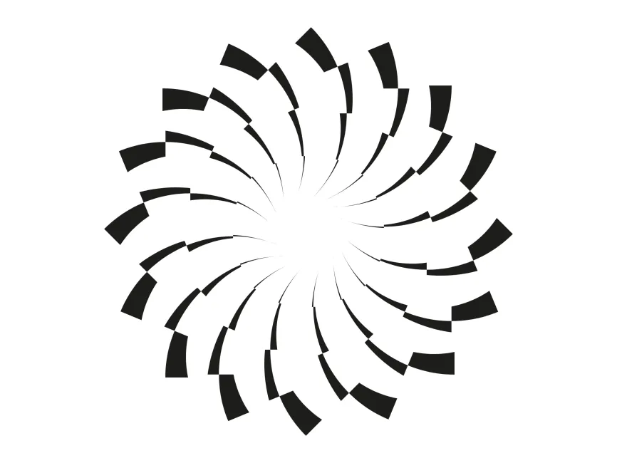 The design of this shape is based on a rotational symmetry principle, where curved segments are strategically placed in a circular pattern. The alternating thickness of the curved elements adds depth and a three-dimensional illusion, making it suitable for high-tech and futuristic branding. The gradual expansion from the center outward mimics a dynamic flow, symbolizing progress, innovation, and transformation.
