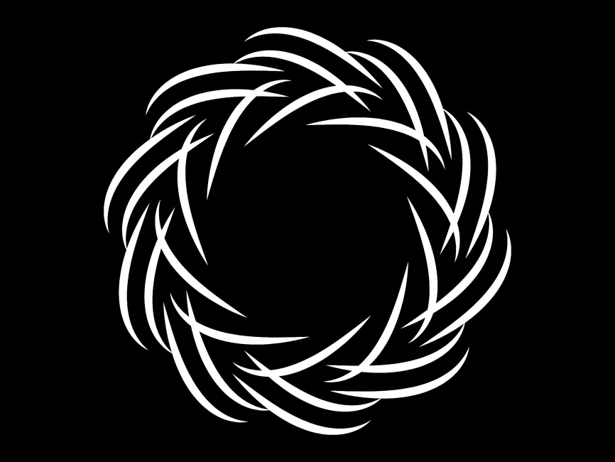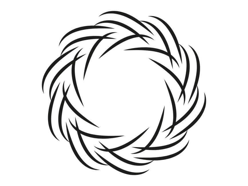 The shape consists of multiple interwoven, crescent-like strokes arranged in a circular motion. The sharp, dynamic curves convey a sense of speed and power, making it suitable for industries related to sports, technology, gaming, and futuristic concepts. The symmetrical arrangement ensures balance and visual harmony, while the negative space in the center enhances versatility in design applications.