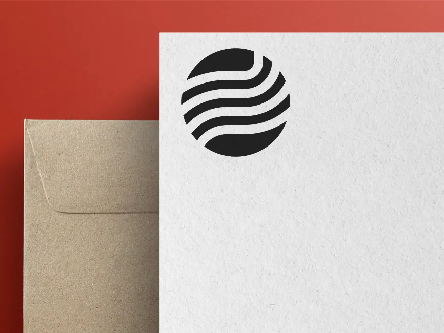 The design follows a geometric balance, maintaining symmetry while incorporating dynamic curved lines. The circular shape symbolizes unity, completeness, and continuity, while the wavy patterns evoke themes of communication, technology, and natural flow. This shape can be utilized in technology, finance, consulting, renewable energy, and global trade branding.