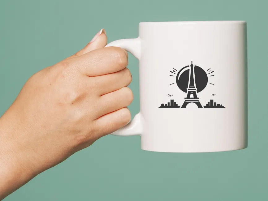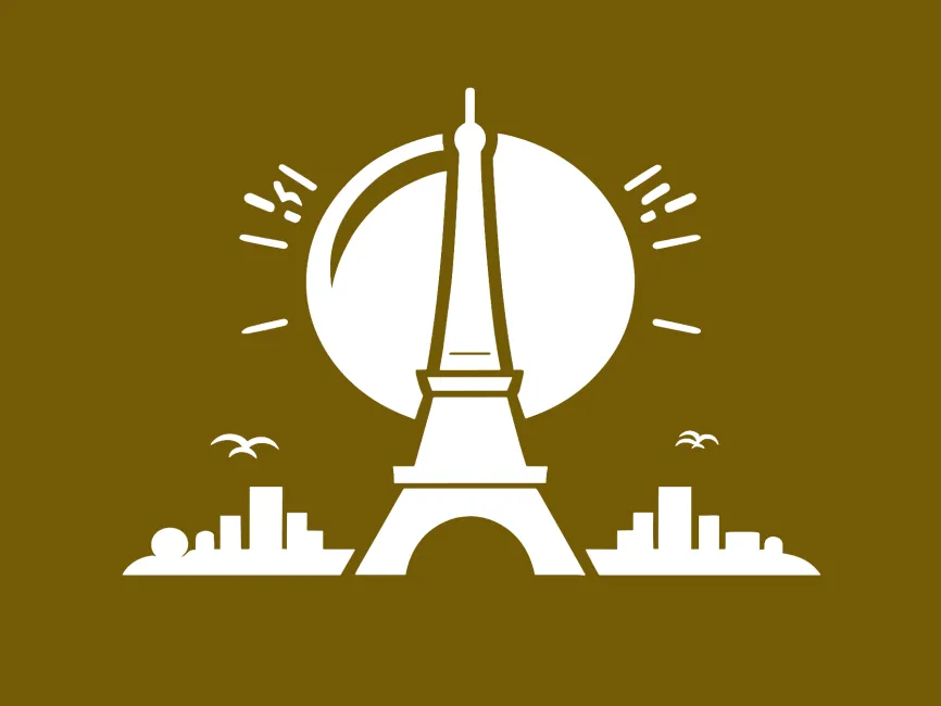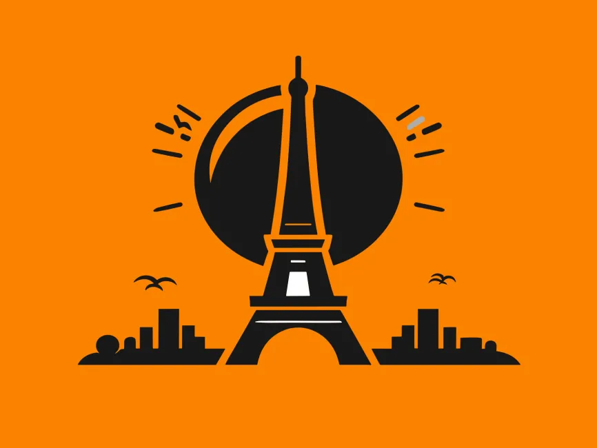 Eiffel Tower Silhouette with Sun vector logo template SVG, PNG and PDF format free Download