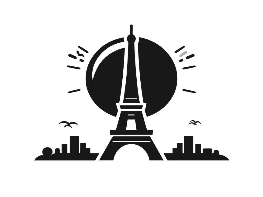Download Eiffel Tower Silhouette with Sun logotype PDF vector and SVG logo Vector Format and PNG Transparent Format.
